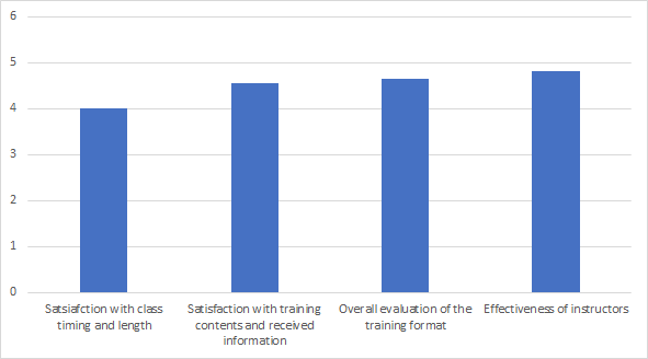 Quality Monitor of training. Trainees’ satisfaction survey (11 respondents). Likert scale (1=not satisfied; 5=very satisfied). Weighted average