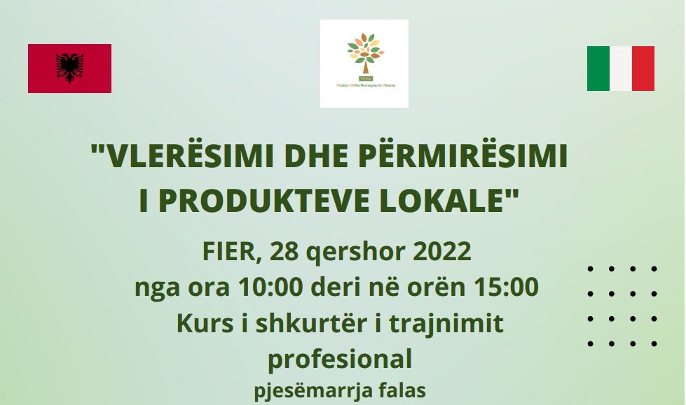 Kurs i shkurtër i trajnimit profesional Pjesmarrja e lirë 28 qershor 2022nga ora 10:00 deri në orën 15:00FIER – Qendra Sociale Murialdo, Rruga Shenjt Leonardo Murialdo Vlerësimi komercial – tregtar i prodhimit bujqësor ndihmon në rritjen e produktivitetit të kompanisë.Për të vlerësuar sa më mirë prodhimet bujqësore duhet të njohësh karakteristikat dhe potencialin e tyre.KjoContinua a leggere “VLERËSIMI DHE PËRMIRËSIMII PRODUKTEVE LOKALE”